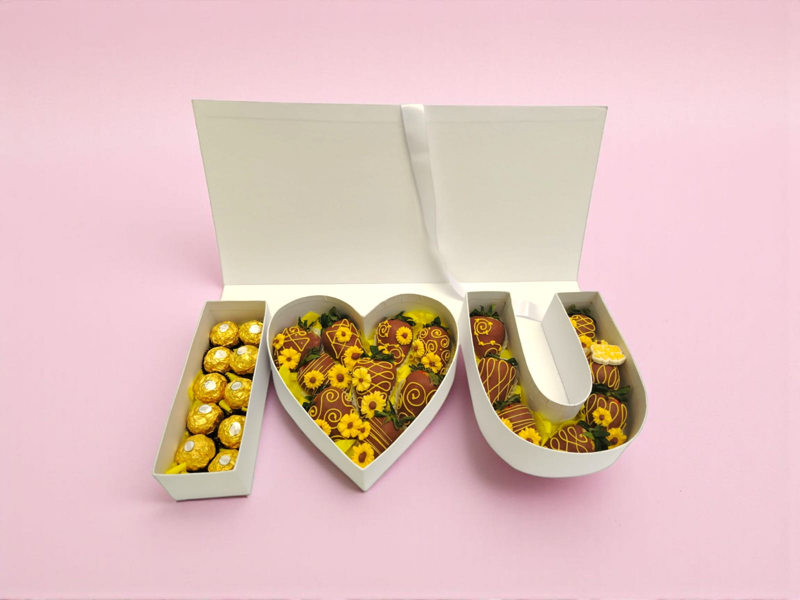 Caja especial tipo libro I LOVE YOU contiene 16 fresas con chocolate y doce ferreros.