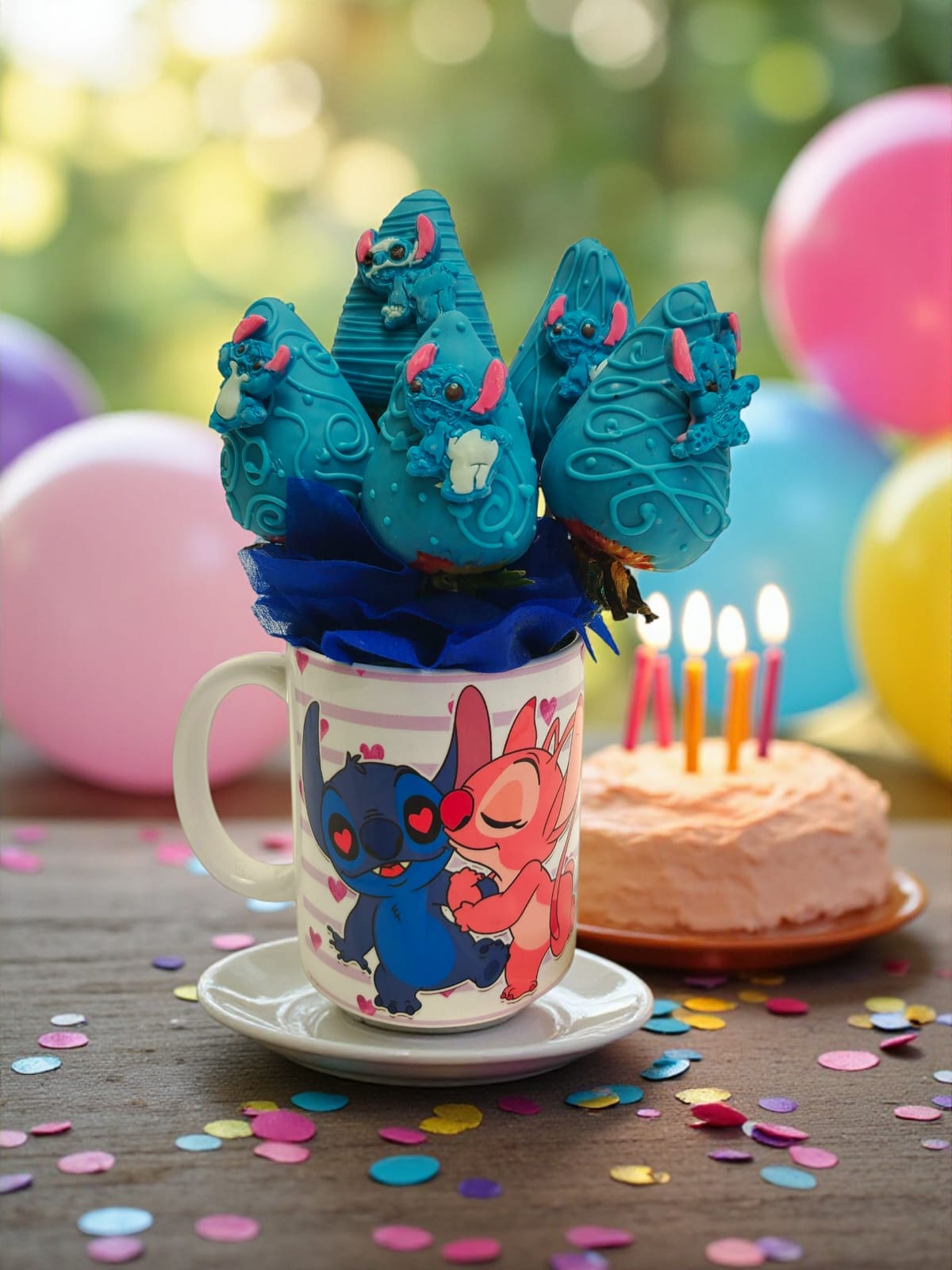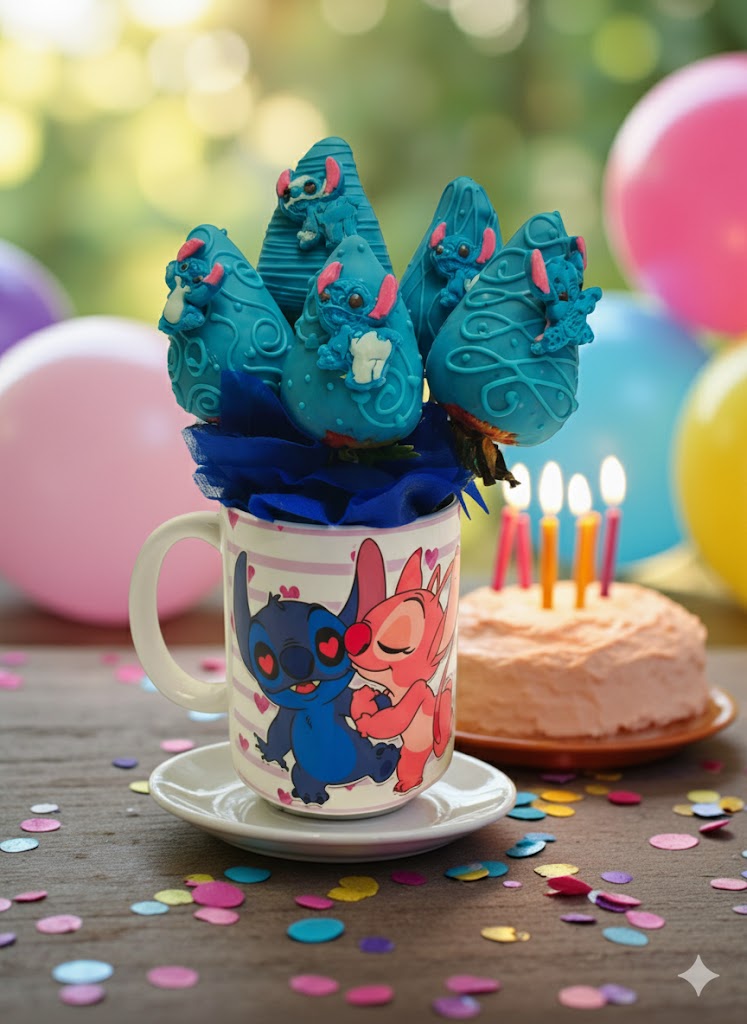 Taza según la ocasión ( varios diseños) se acompañada cinco fresas con chocolate personalizadas.
